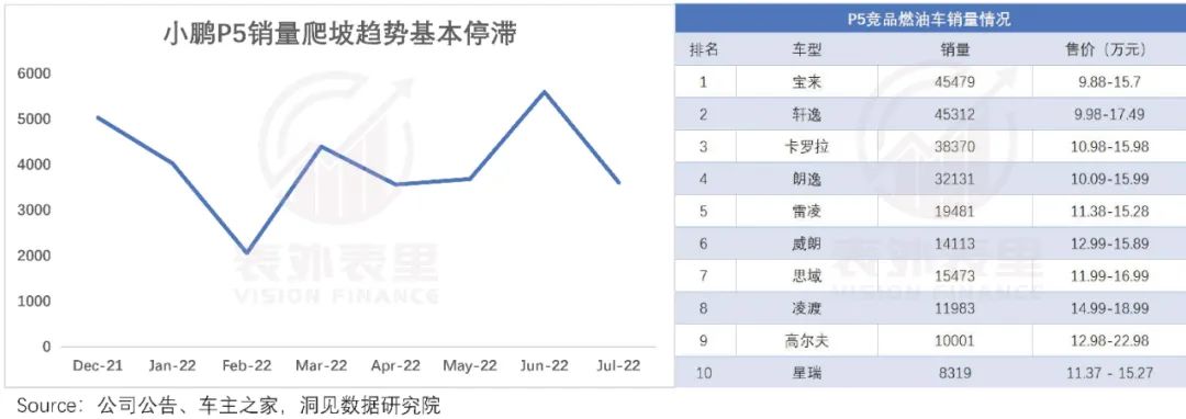 可以看到,受惠于近期购置税减半优惠和地方补贴,买燃油车更便宜了。大大冲击小鹏的销量——7月小鹏汽车销量环比下跌24.66%,三家里下跌最大,其中P5只卖了3000多辆。
