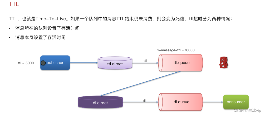 注意: 存活时间取消息所在队列中存货时间 、消息本身存活时间的以短的时间为准