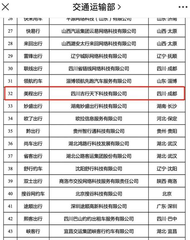 前几天,交通运输部发了一篇有关6月份网约车行业运行基本情况的推文,公示了订单合规率排序前十的网约车平台以及180天以上未传输数据、不符合订单合规率的网约车平台公司情况,其中也包括美程出行。