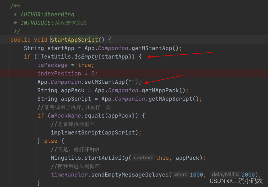 前端点击脚本运行之后,需要把当前的应用信息以及脚本信息,发送到后端,也就是手机端,那么手机端如何接收这个通知呢?这里在手机端做了一个定时操作,也就是不断的来轮询是否有指令过来,有的话,赋值一个变量为true,就直接执行程序,程序执行完或者点击了终止操作,把这个变量赋值为false,也就是说,轮询一直都在,但程序的执行是通过变量来控制的。