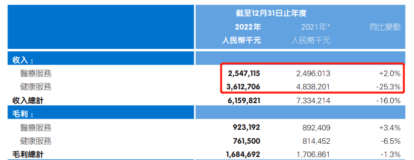 如在2022年财报中,平安好医生录得营收61.6亿元,同比下滑16%。可若进一步拆分业绩,投资者就会发现,造成公司营收下滑的核心原因在于健康服务业务营收的滑坡,而医疗服务营收反而同比增长2%。