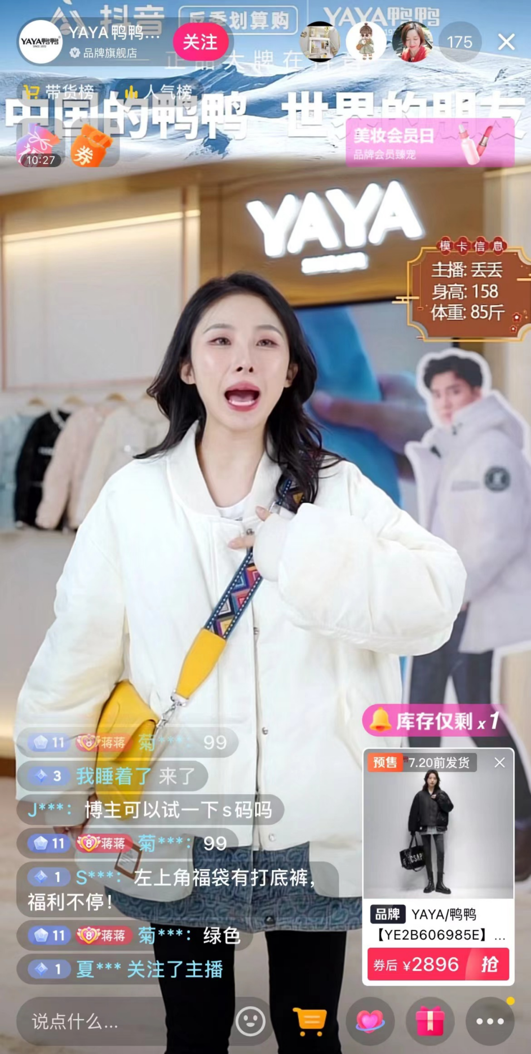 鸭鸭羽绒服是在抖音转型最成功的老品牌之一,在去年雪山直播爆火后,鸭鸭羽绒服为这些老品牌们打了个样,现在鸭鸭的抖音直播中,自播和达播的比例达到了7:3,也就是说,有70%的GMV都是靠品牌自播。
