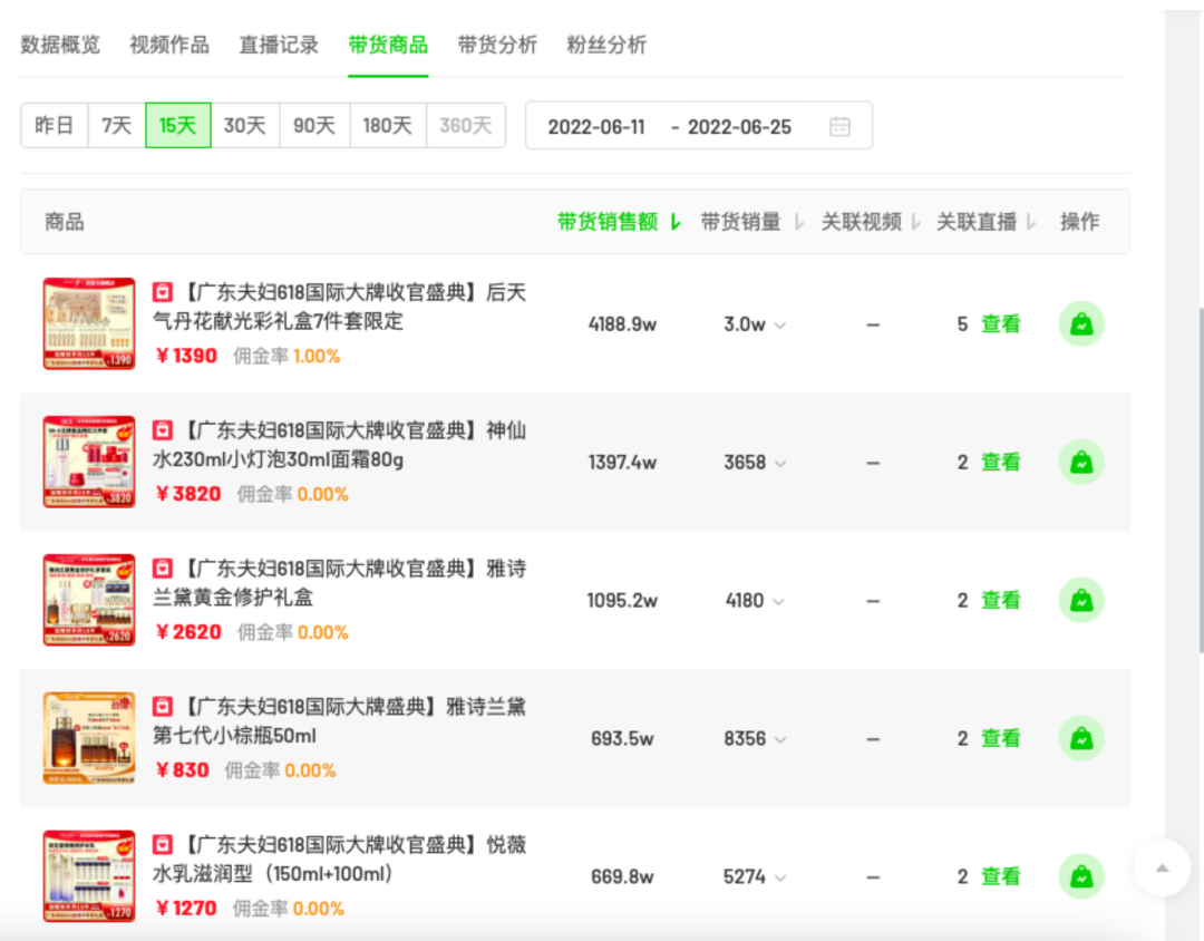 以广东夫妇为例,618直播集结了包括雅诗兰黛、兰蔻、赫莲娜、SK2、天气丹、资生堂、娇韵诗等一系列国际大牌,且都是从各大品牌的官方旗舰店发货。其中,雅诗兰黛在广东夫妇直播间取得了3994.4W的增量,也是雅诗兰黛618重要的销售额来源。