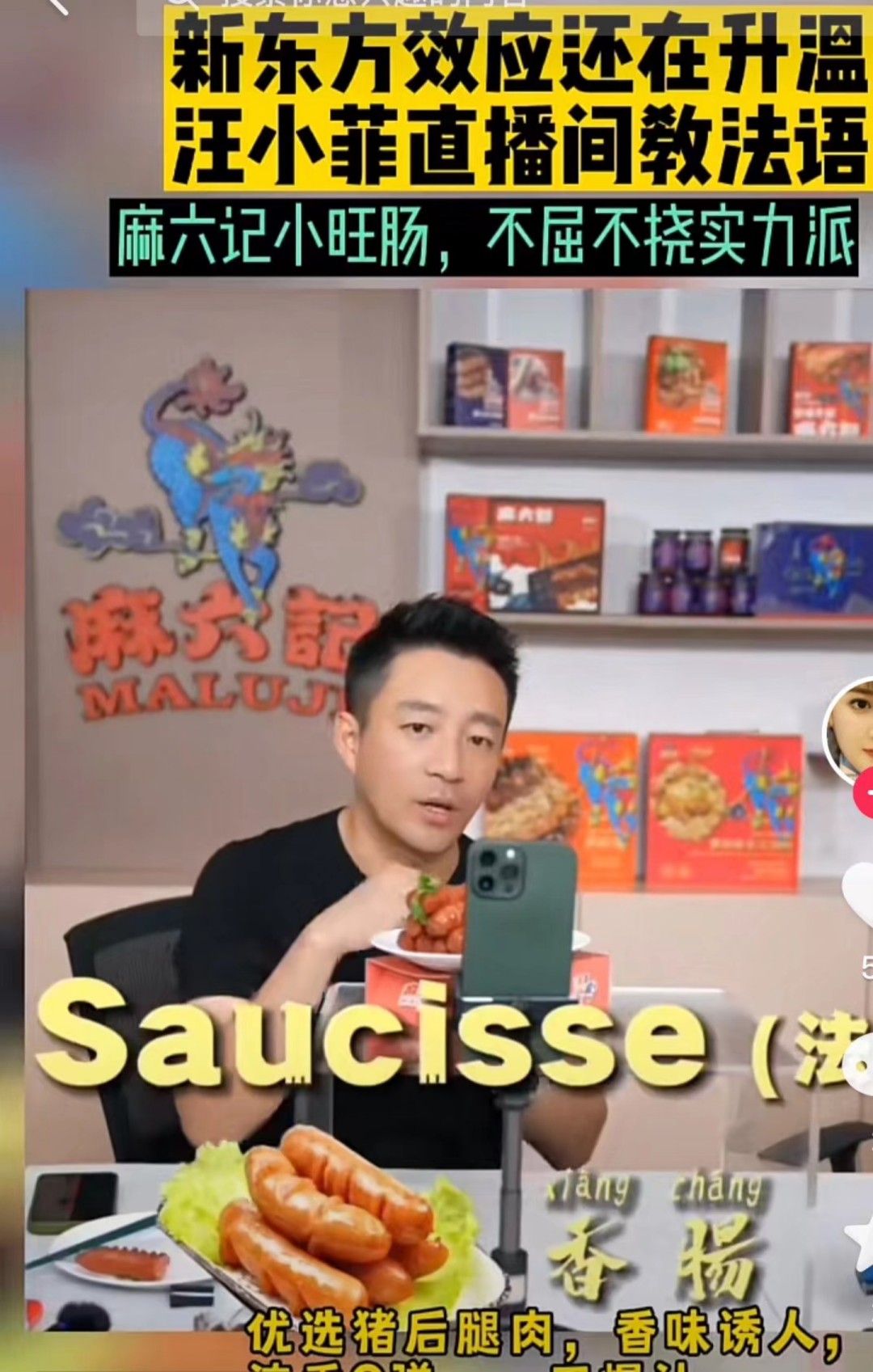 618期间,汪小菲在直播间讲起了法语,不过因为其有限的词汇和跑偏的发音,反而引发了网友们的群嘲,有网友评价他“画虎不成反类犬”“东施效颦”。