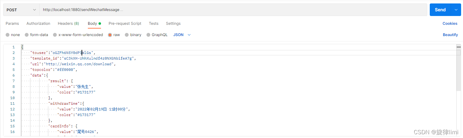 "touser":"发送人的微信号:oGZFh6N5Y0dP1ygJlNs",