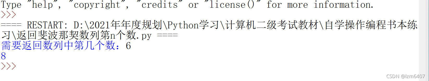 全国计算机等级考试python二级教程中,第五章练习编程题第5小题,编写一个函数,参数为一个整数n。利用递归获取斐波那契数列中的第n个数并返回。