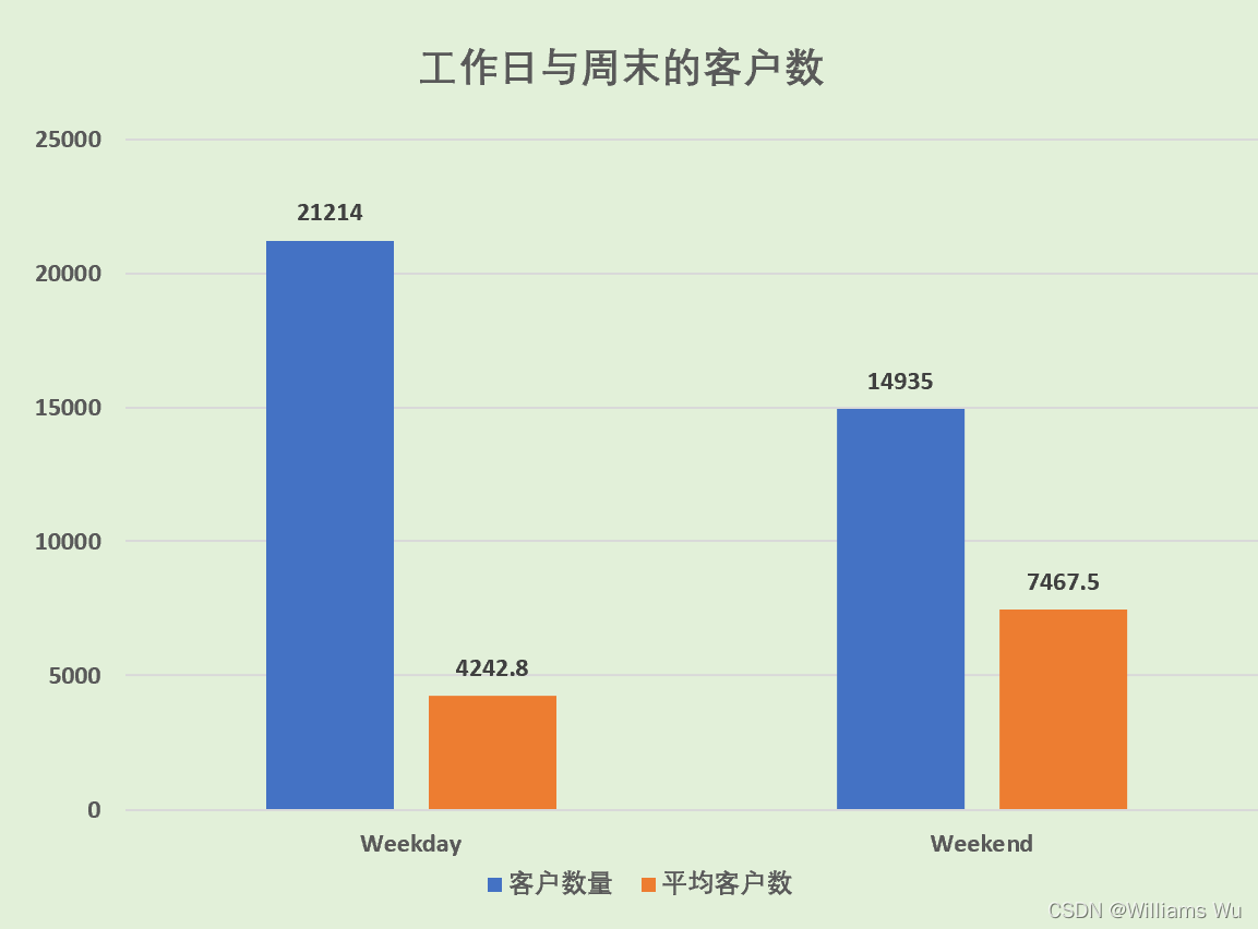 - 工作日与周末的客户数与平均客户数情况分布 *