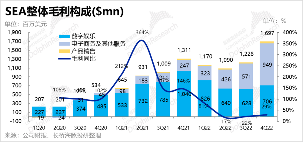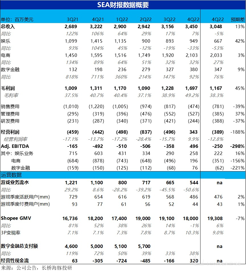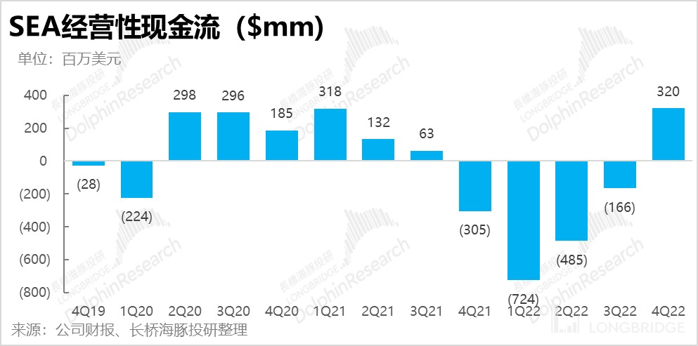 由于 Garena 游戏板块已经烂透,集团先前整体的现金流状况也岌岌可危,何时能利润扭亏几乎是公司和市场唯一的关注点,因此我们此次对 SEA 的业绩点评也会优先从盈利角度出发,至于营收增长则相对次要。
