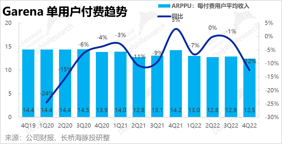 让问题更严重的是,本季度单用户付费本季同比下降了 12%到 12.5 美元,环比下降了。原本在玩家群体提纯的情况下,单用户付费率应该是企稳,而本季度却意外大幅下降,这可能暗示着游戏热度的崩盘,连核心用户都不愿意付费了。