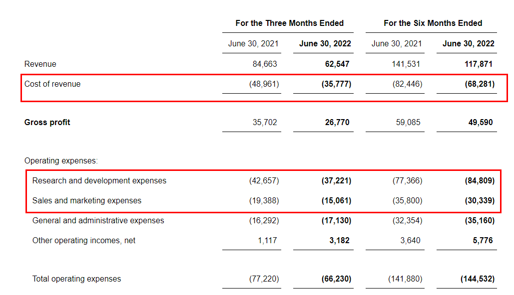 翻看成本结构可以发现,涂鸦智能二季度营收成本从去年同期的3570万美元下降25%至如今的2680万美元,总运营费用则同比下降14.2%至6620万美元。在各项支出中,研发费用和销售及营销费用都显著降低,只有一般及行政开支略有上升。