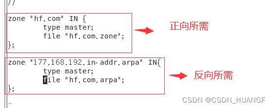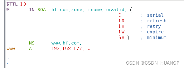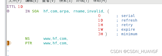 3,vim hf.com.arpa 编辑文件如下图所示: