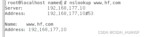 2,cp -a named.localhost hf.com.zone 将named.localhost里的内容复制生成新文件为hf.com.zone(文件名自定义):