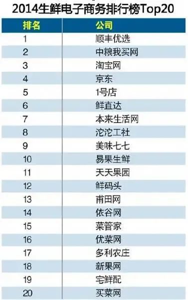 2012年5月,顺丰优选正式上线;1个月后,淘宝上线生态农业板块;同年7月,京东推出生鲜频道;年底,1号店、天猫商城等也纷纷加入这一领域……