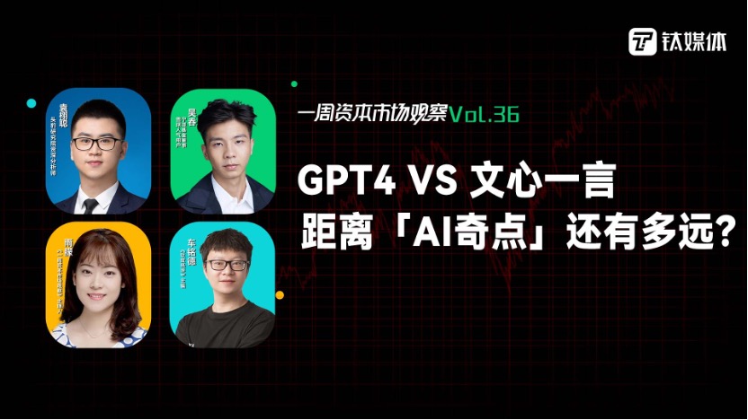 本期节目,《一周资本市场观察》主理人雨朦对话头豹研究院资深分析师,袁栩聪,《钛度热评》主编车铭德,宁泽基金董事、雪球人气用户吴吞,分享了与GPT-3.5相比,GPT-4有何新的突破,GPT接入Microsoft 365所带来的影响,“文心一言”的功能体验,百度“All in AI”布局的发展现状,ChatGPT会开启哪些全新的应用场景与商业模式,中药行业的发展情况以及面临的问题与机会,《家庭托育点管理办法(试行)(征求意见稿)》带来的影响,民生证券股权拍卖,Adobe业绩解读,李宁为何绩后股价大跌等话题。