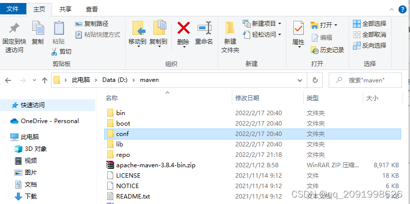 在d盘建立名为maven的文件夹进apache-maven-38.4-bin-zip解压到“D:\maven”中,repo是后期生成的现在不用管