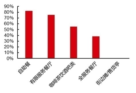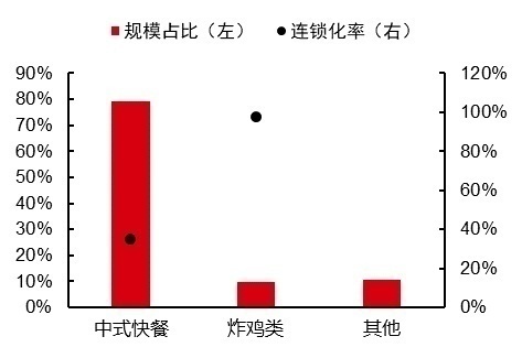 目前,国内餐饮行业集中度或连锁化率比较好的业态是有限服务餐厅。其中,80%都是快餐,这部分快餐的连锁化率达到了46%。