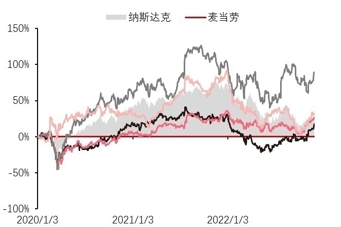 从利润表现来看,就比较分化了。在2020年三季度到2021年一季度这段期间,这些企业的利润恢复到了疫情前的水平。而自2021年下半年以来,受通胀影响,这些企业的整体利润增速又有所下降。
