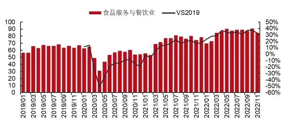 △新加坡餐饮服务指数(不变价)及同比2019年增速;资料来源:新加坡统计局,wind,中信证券研究部