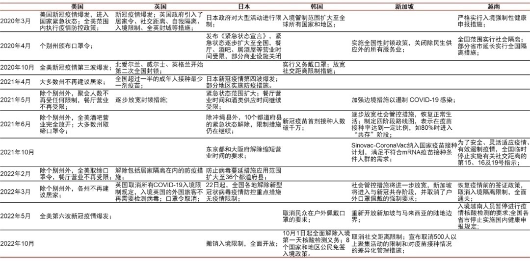 在此,我们着重梳理了美国、英国、新加坡、日本、越南和中国香港放开后的复苏情况,希望能给大家带来一些启发。