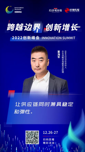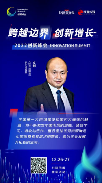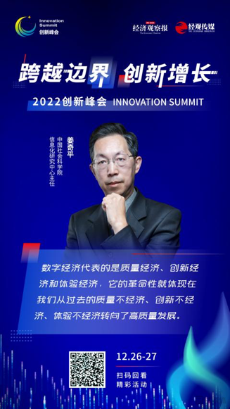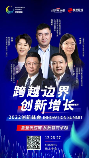创新没有终极的模式,只有永恒的探索。2022年12月26日,由《经济观察报》主办的第十二届创新峰会在线上与大家见面,峰会以“跨越边界 创新增长”为主题,邀请了30多位来自政府、学术和产业界的重磅嘉宾,从数字经济、先进制造、智慧供应链、半导体投资、大健康创新、智能制造、长租公寓、ESG责任发展等诸多热点领域分享前沿动态和创新实践。