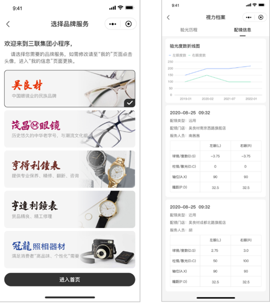 本文前面我们所提到的,数字化转型趋势在即,传统实体行业如果不顺势而为,保持与时俱进的发展理念,那么势必会被消费者遗忘在历史洪流之中,传统老字号企业更是如此。上海三联集团成立于1956年,隶属于国内零售龙头百联集团,专业经营钟表、眼镜和照相器材的零售与批发。旗下五大品牌亨达利、亨得利、吴良材、茂昌、冠龙均为知名百年老字号品牌。