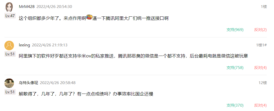 然而事实并非如此,根据开发者在社交平台上的说法,因为收费过高、审核太困难、条件很严苛的缘故,目前超过99.99%的中小型开发者毅然决然地选择不接入统一推送服务。没错,为了统一推送机制的可持续运营,统一推送服务在保证推送内容合规的同时,还需要付费使用,这对于本来就重视维护成本的中小型开发者来说显然是雪上加霜。