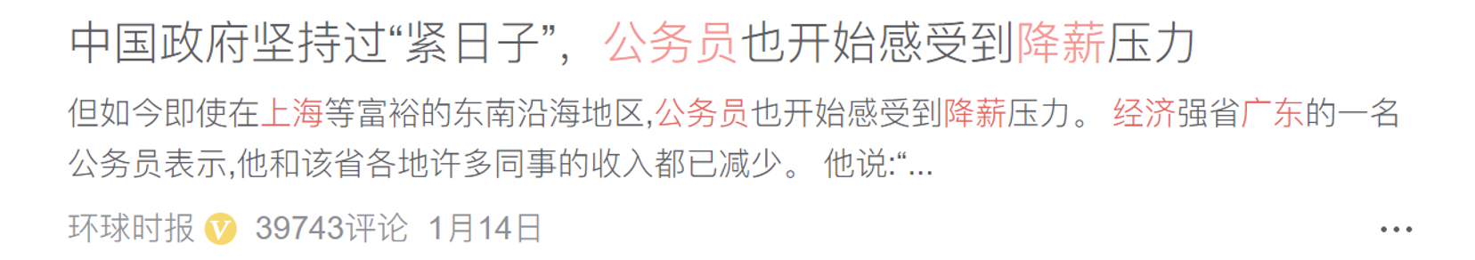 此外,各个地方都爆出公务员、国企员工纷纷降薪的新闻。