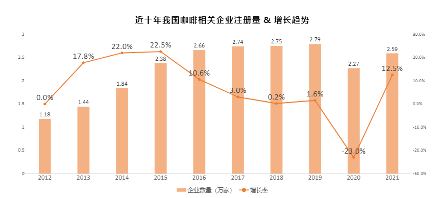 在过去的两年时间内,大城市各类咖啡生态不断兴起,也让咖啡市场得以不断扩容。即使在疫情承压之下,国内咖啡相关企业仍呈现逆势增长。