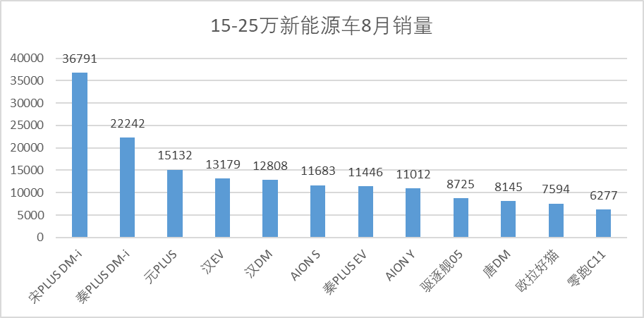 图:15-25万新能源车型8月销量 来源:懂车帝