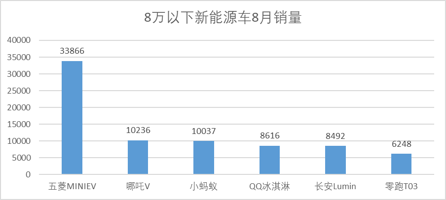图:8万以下新能源车型8月销量 来源:懂车帝