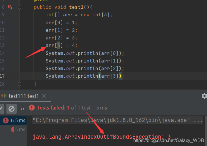 当我要输出下标为3的元素的时候,报出课错误,即数组下标越界异常。