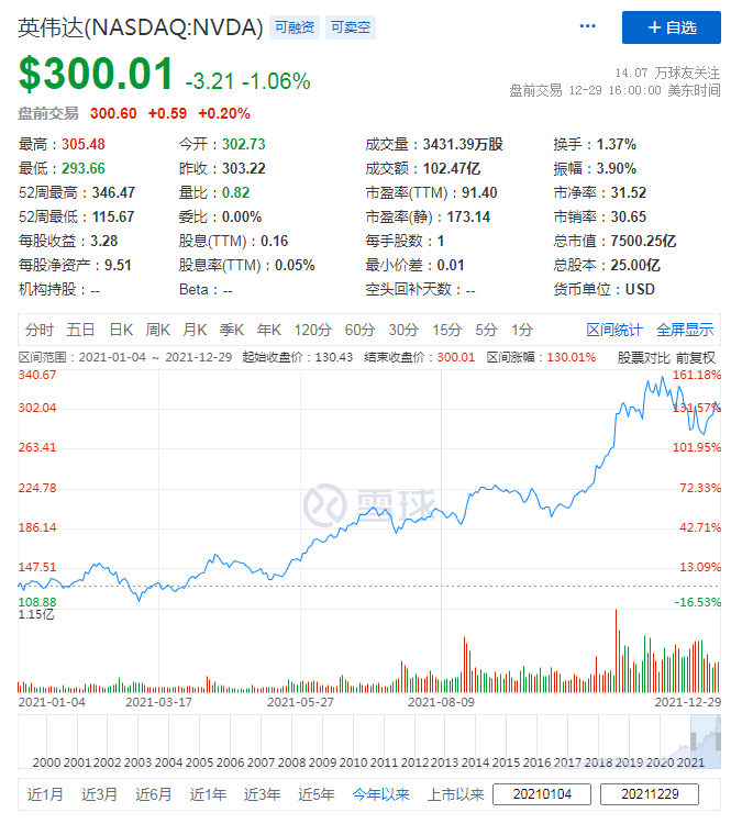 没有人能否认英伟达在作为GPU领导者,并有一系列配套的引擎、开发套件的情况下,对元宇宙可能起到的决定性作用。正是在这种思潮的指引下,今年以来英伟达股价大涨了130.01%,而这还是经过一轮回调后的数据。目前,其市值依然居于7500亿美元的高位,并被视为万亿俱乐部下一个成员。