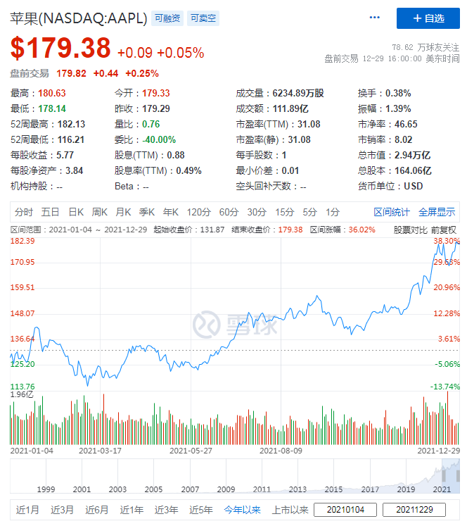 就绝对值而言,苹果涨幅并不算亮眼。但考虑到截至发稿,苹果股价已高达2.94万亿美元,而且31倍PE并不算高估。作为超级巨头,苹果的稳定增长才是最值得投资者关注的点。