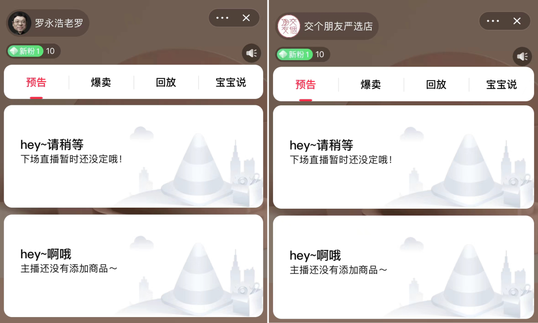 图注:淘宝直播中,“罗永浩老罗”和“交个朋友严选”账号页面截图。
