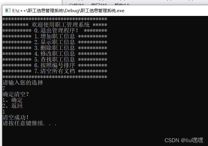 - 清空所有文档:清空文件中记录的所有职工信息(清空前需要在此取人,防止误删)