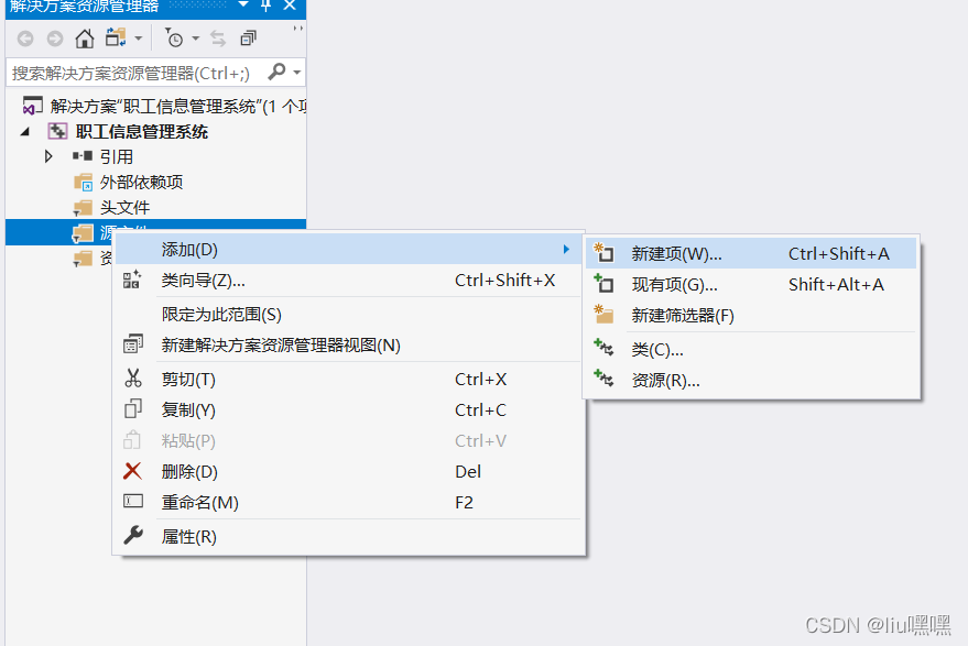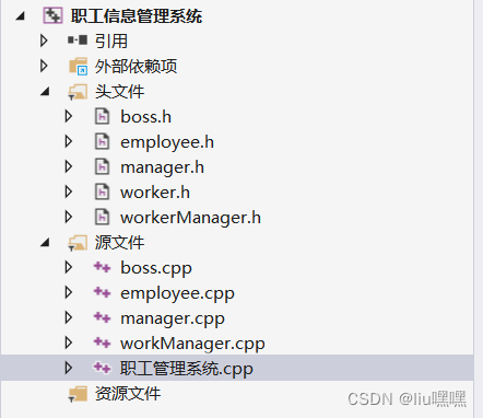 在头文件和源文件的文件下分别创建workerManager.h和workManager.cpp文件