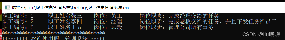 cout << "********* 欢迎使用职工管理系统 *****" << endl;