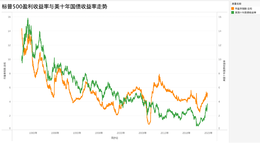 基于此逻辑,我们制作了标普500盈利收益率(市盈率倒数)与美十年国债收益率的走势关系,见下图: