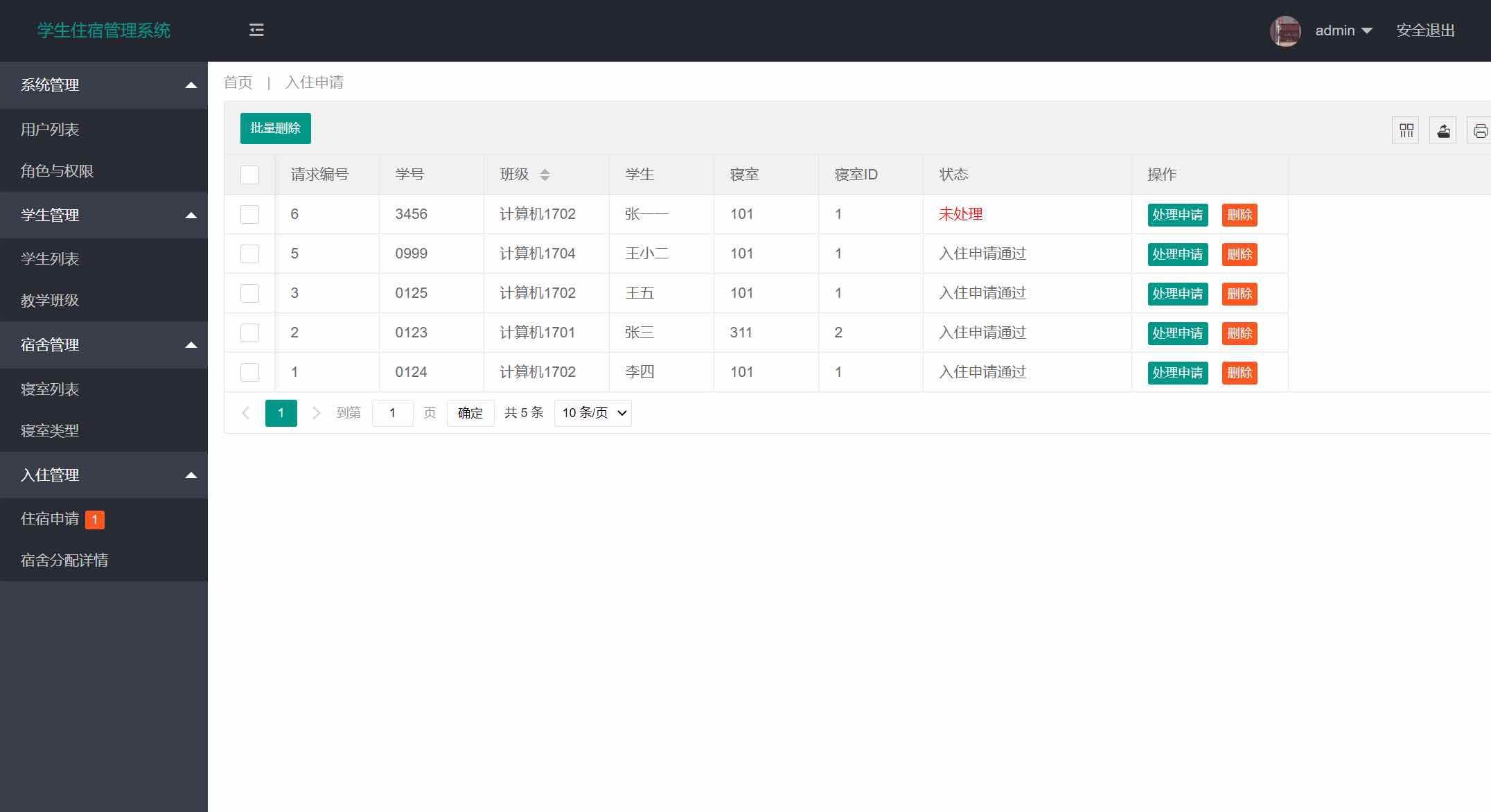 宿舍管理系统,分为系统管理员与学生两种角色;