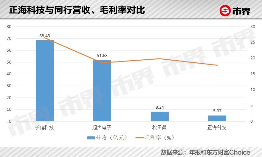 成立于2011年的正海科技是一家触摸屏厂商,其营收50%来自汽车电子触摸屏。根据招股书,2021年上半年正海科技营收为5.07亿元,净利润为4274万元。丰田、日产、本田、奔驰、通用以及吉利、长城、长安、奇瑞等车企都是其车载领域终端客户。但是与行业龙头长信科技2020年68.43亿元的营收相去甚远,且正海科技17.77%的毛利率也较长信科技26.46%低近10个百分点。