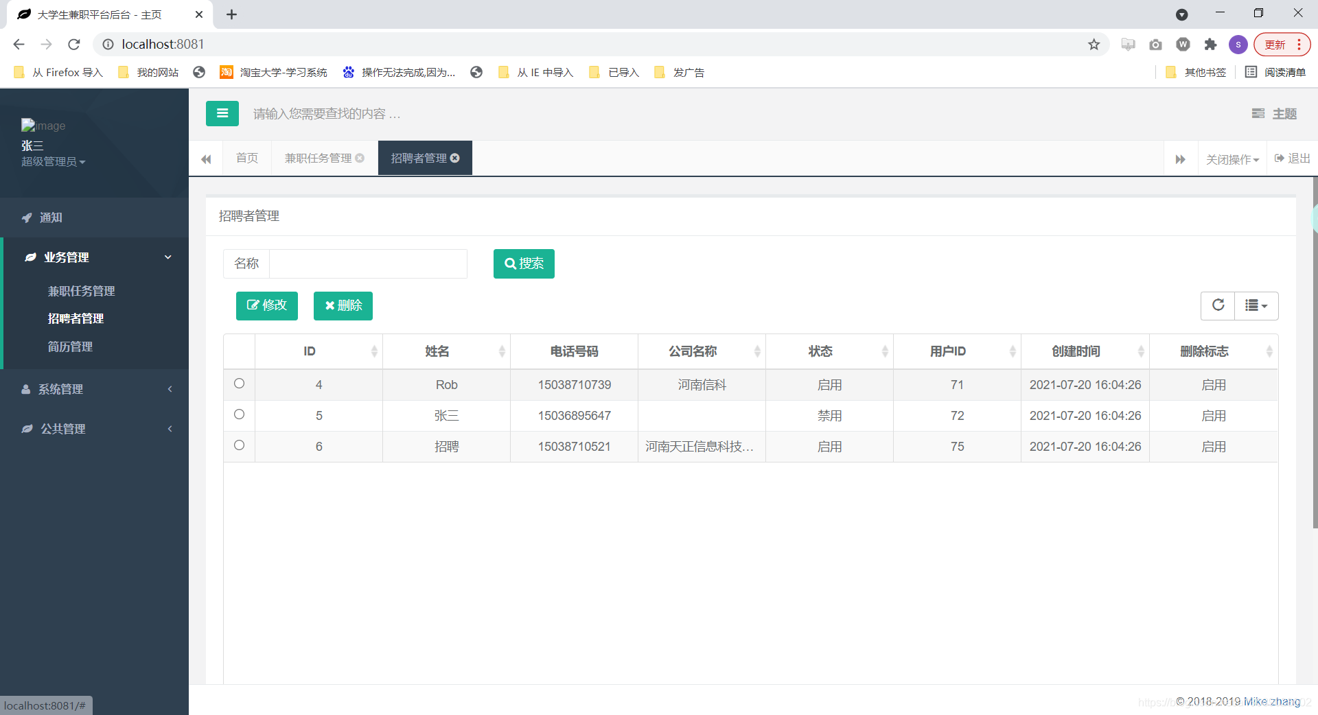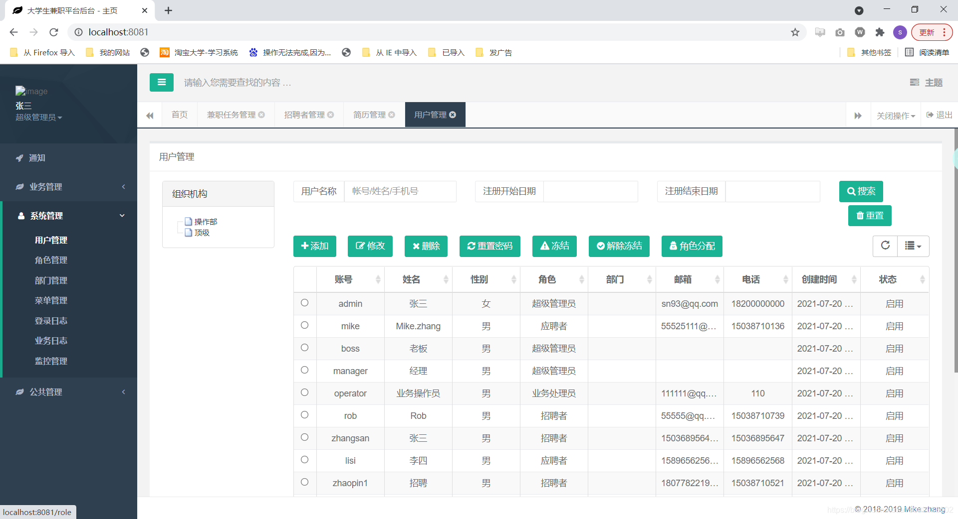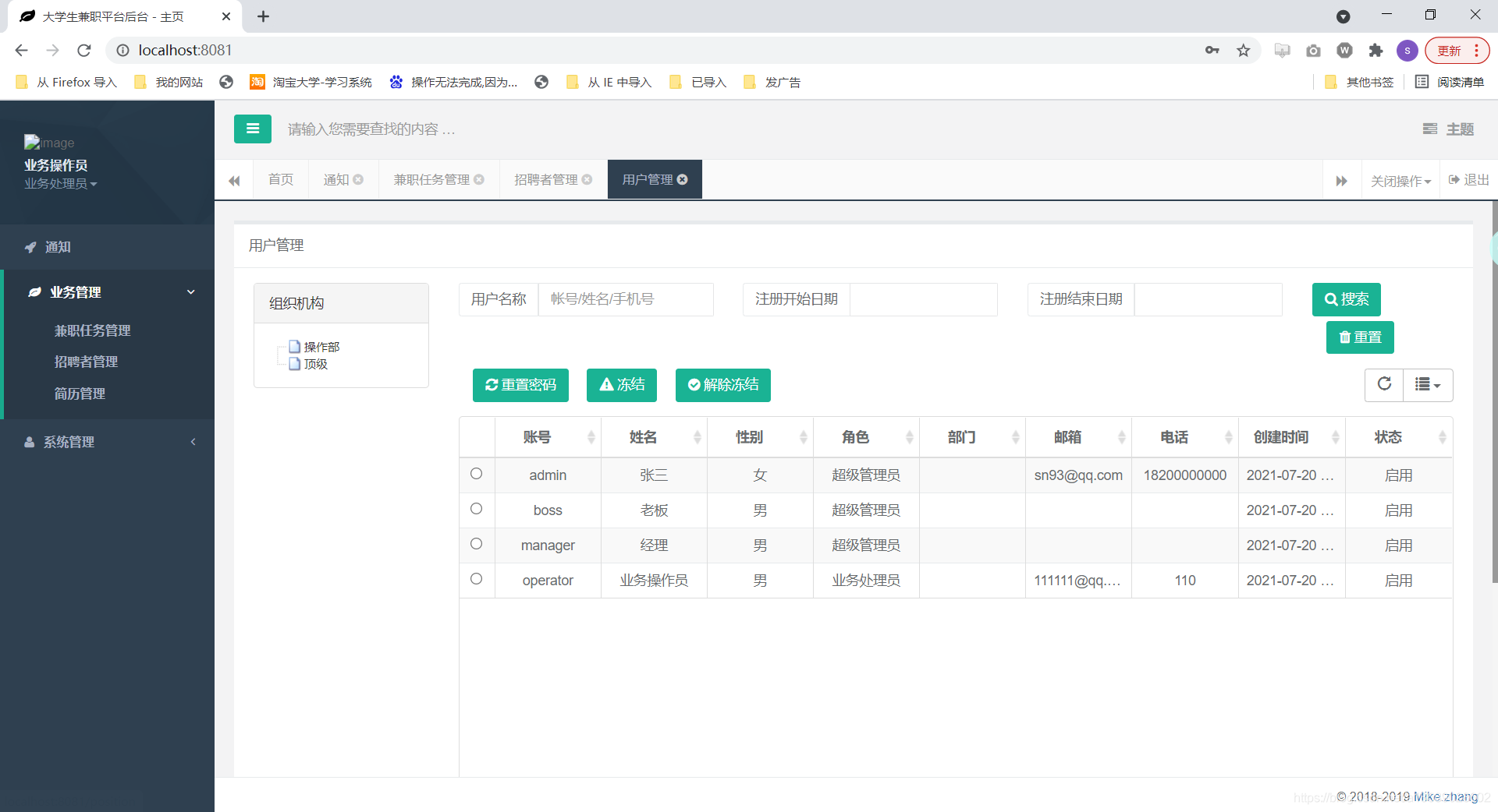 对商家和兼职人员信息审核管理及兼职人员和招聘人员管理人员(数据管理员)