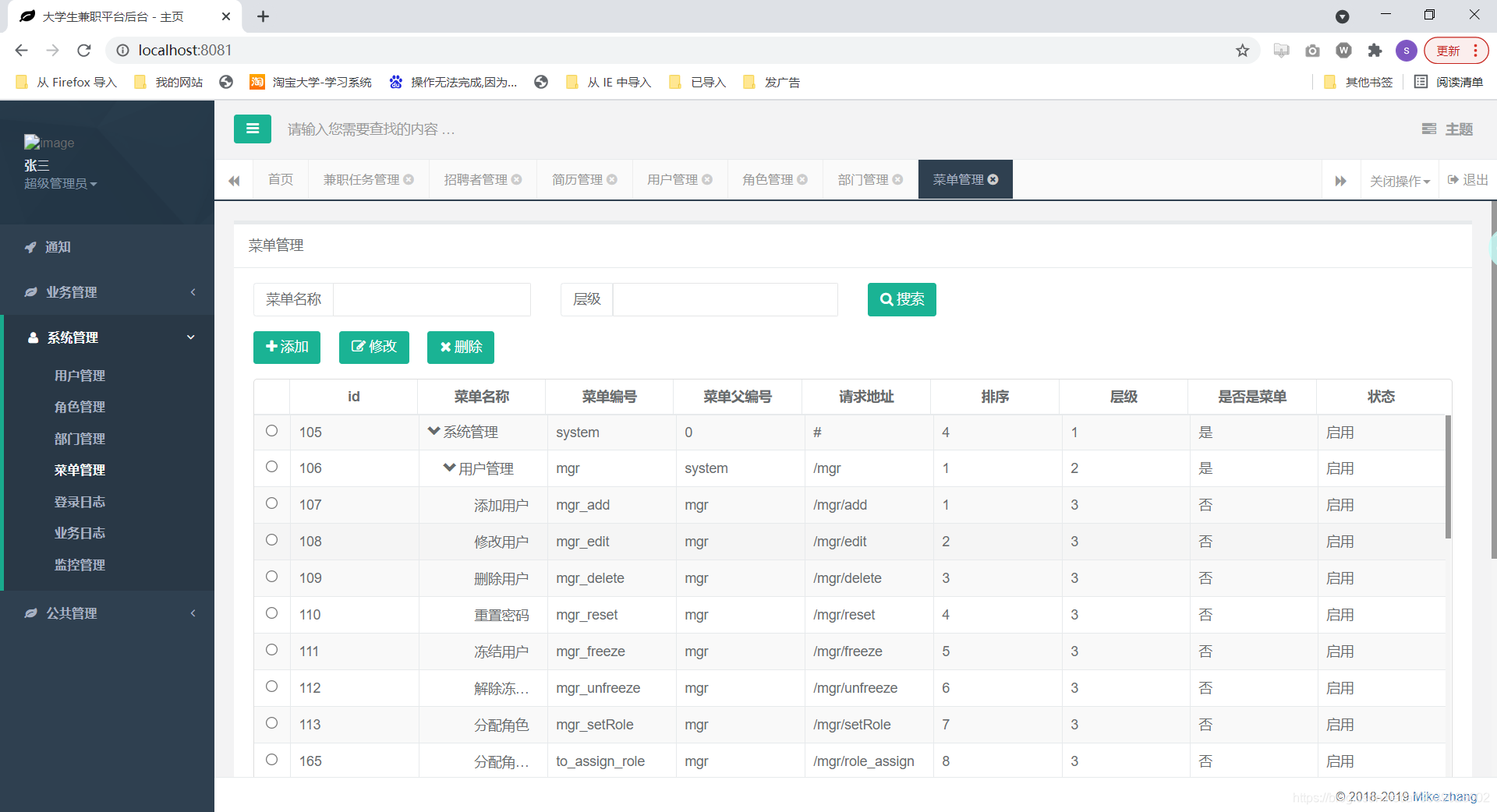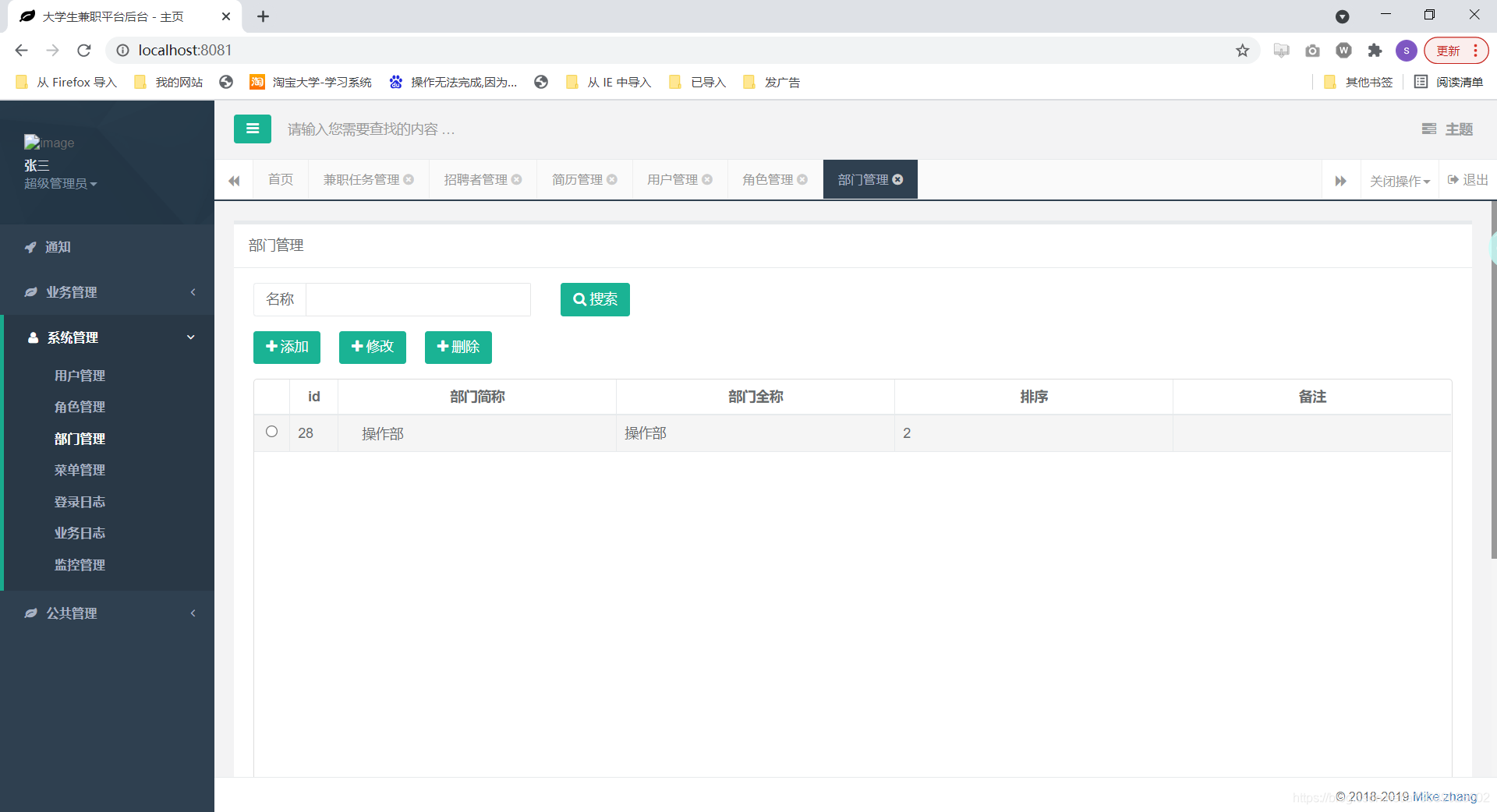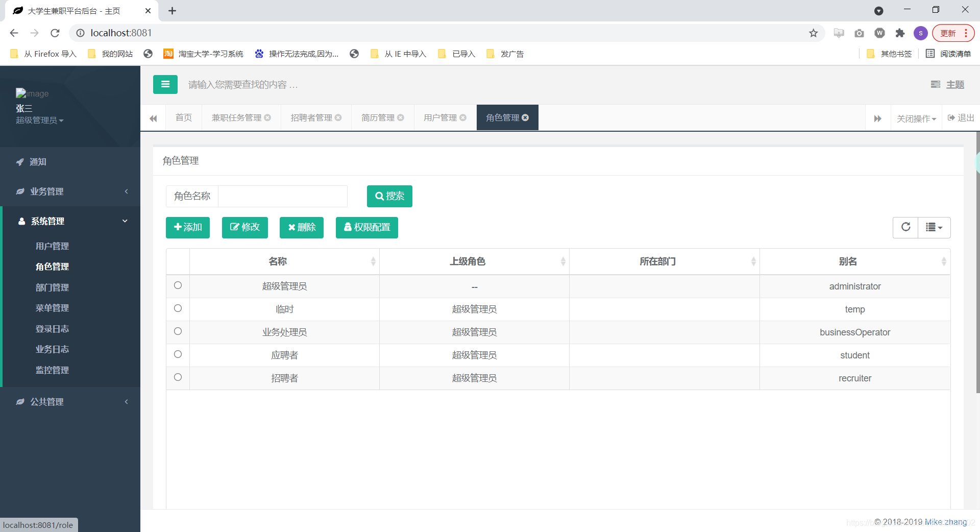 对商家和兼职人员信息审核管理及兼职人员和招聘人员管理人员(数据管理员)