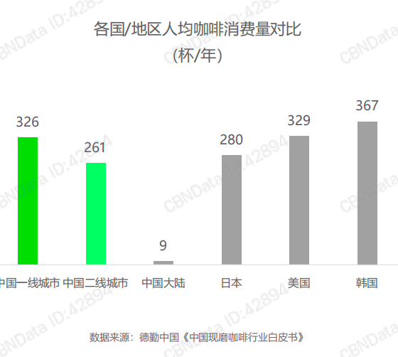 然而纵向来看,目前中国咖啡人均咖啡消费仍远远低于世界其他国家,并且集中于一、二线城市,下沉市场机会众多。接下来的十年,咖啡在大陆市场的经济潜力仍等待挖掘。