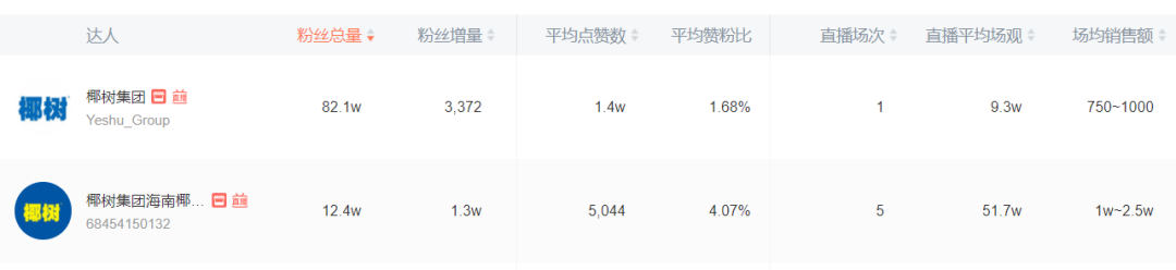 不过,众多年轻女性的追捧,仅仅让椰树获得了良好曝光,却没能刺激其销量。蝉妈妈数据显示:“椰树集团海南椰汁饮料有限公司”账号,直播场均观众已超过50万。但是场均带货销售额,只有1万元到2.5万元。