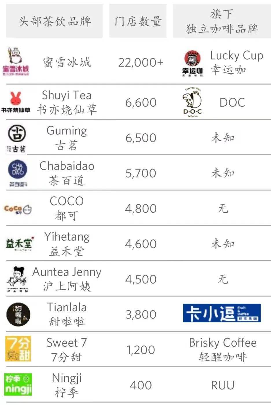 蜜雪冰城在2017年推出了平价咖啡品牌“幸运咖”,以河南为大本营向外拓展;今年4月,书亦烧仙草投资“DOC”咖啡;6月,甜啦啦旗下咖啡品牌“卡小逗”首家门店在蚌埠万达步行街开张;8月,茶颜悦色推出了“鸳央咖啡”,在长沙五一商圈营业;9月,奈雪的茶入股“AOKKA咖啡”。