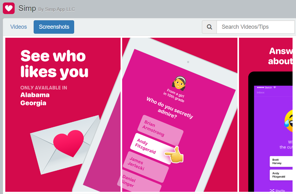 介绍到这,不知日常关注美榜的朋友能否察觉到,Gas 的玩法与与此前一款名为 Simp 的匿名问答应用相似度极高,事实上,两款 App 均来自同一发行账号。Simp 也曾一度来到美国免费榜 Top11,不过在 8 月末似乎因为隐私、安全问题匆匆下架,而 Gas “恰好”在 8 月 27 日上线。