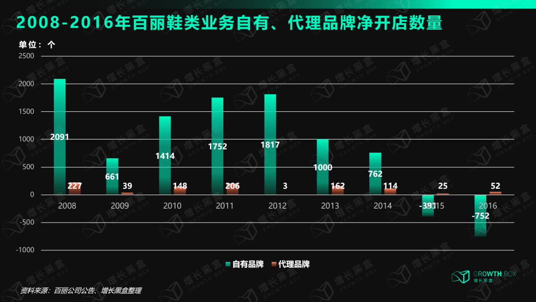 - 2013年前后百丽开始增长失速,很多人认为这来自于新品牌的冲击,但最核心的原因,还是面对移动互联网时代商业环境的新变化,百丽原有的渠道和产品优势渐渐失效,组织的惯性和滞后性,又导致百丽没能及时调整,面临“内忧外患”。