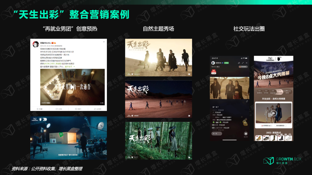 百丽时尚在2022年9月与天猫超级品牌日合作举办“天生出彩”自然大秀,就是出自BIC团队的手笔。这场时尚大秀先由当时大火的“再就业男团”以极具创意的形式发布预告,又将秀场搬到自然界中,用不同的颜色和自然元素为百丽旗下不同的品牌赋予个性,同时和时尚圈头部媒体合作,并通过社交玩法传播出圈。