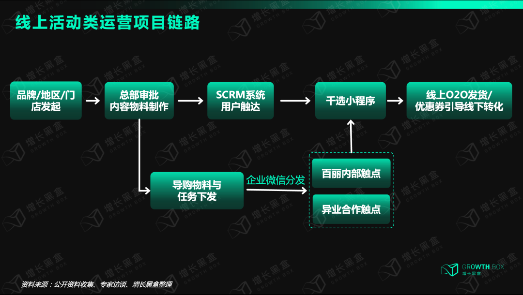 况且,这部分仅仅是常规线上私域销售带来的营收,除了常规销售外,百丽还会定期推动活动类销售。活动通常由地区发起,主要目标为清库存或进行渠道合作,地区内的多品牌都会共同参与。发起活动的地区会根据商业目标圈定用户画像、制定沟通信息,然后将触达需求提交给集团总部。