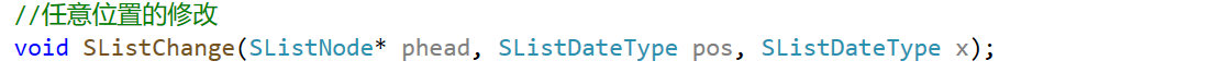 //任意结点数据的修改 void SListChange(SListNode* phead, SListDateType pos, SListDateType x) { SListNode* cur = phead; while (cur->date != pos) { cur = cur->Next; } cur->date = x; }
